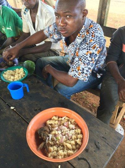 Attiéké的密度很大,相傳只要吃一點就可以飽到犯困的程度,所以當地人中午盡量不吃。不過我有時候中午在食堂吃了Attiéké也沒啥特別的感覺,估計是因為我中午不管吃什么下午都會犯困。