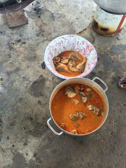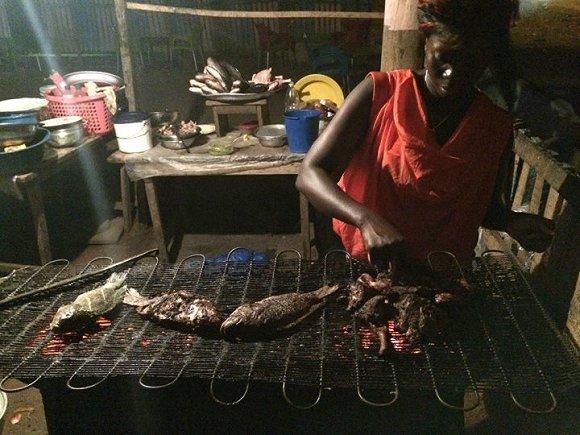 上圖就是當地典型的熏烤,不管是魚呀肉呀都可以往烤架上面扔。烤熟之后拌上各種各樣的醬汁就可以上桌了。