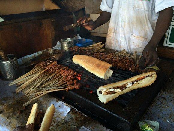Chien在法語里的意思是小狗,相傳以前有不少黑心攤主掛羊頭賣狗肉,搞的很長一段時間人心惶惶都不敢吃烤串,把街頭的烤串通稱為chien。不知道為何當地人這么反感吃狗肉,我反正是有過無數次被黑人質問起狗肉的經歷:你們中國人啊太殘忍了,居然連狗肉都吃,我們頂多也就吃吃猩猩猴子,我們絕對不會吃狗肉的。