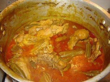 秋葵醬(Sauce Gombo),這可能是當地最盛行的醬汁了。下圖是這是在我一個同事家拍的,他把肉和魚都混到一起了,實在是有點不堪。