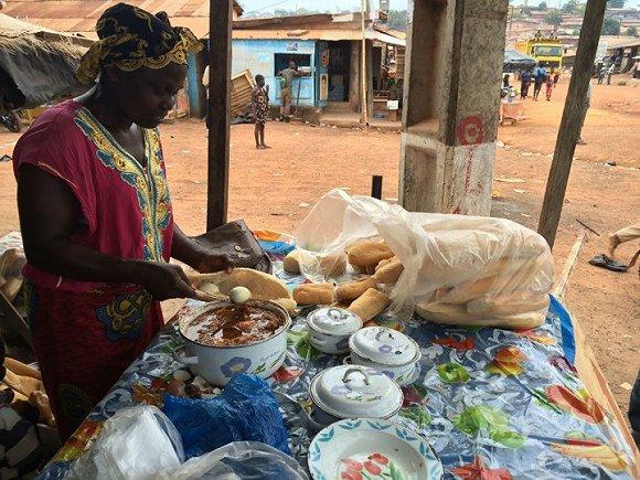 中餐講究醬料入味食材,西餐則是醬料與食材分離。所以西餐里衍生出了中餐里所沒有的醬汁體系。到了科特迪瓦,前面說過食材的做法都比較單一,所以醬汁就成為科特迪瓦人飲食習慣中非常重要的一環。尤其是當地人往往喜歡把食材魚呀肉呀浸泡在非常濃厚的醬汁里吃,與中國人法國人的習慣都想去甚遠,大家可以通過以下一些圖片隨意感受一下。