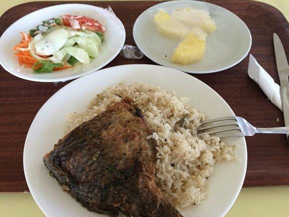 科特迪瓦面對著大西洋,沿海地區又有諸多內湖,盛產各種海鮮河鮮,不同季節的市場上可以找到龍蝦大閘蟹烏賊魷魚海蠣幾乎任何一種你想要的海鮮,價格也不算太貴。但是據我的觀察,當地人平時基本只吃魚極少吃其他海鮮,主要有金槍魚,羅非魚(非洲鯽魚)、海鱸魚、鯛魚等等。當地人食用魚的量比吃肉還要多,畢竟肉是要養出來的,魚只要靠捕撈就好。我們的食堂每天中午一般就是兩道主菜,一道是魚,一道是雞肉或者牛肉。