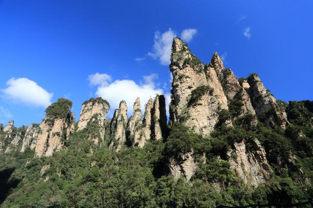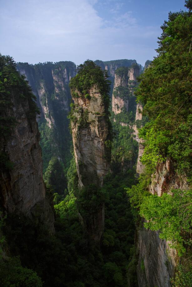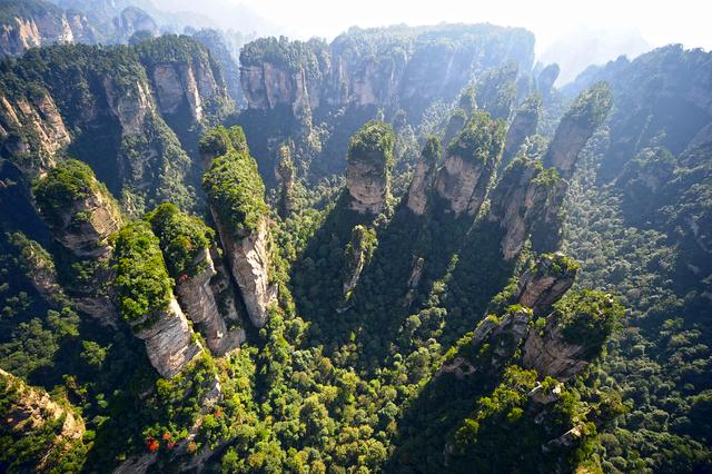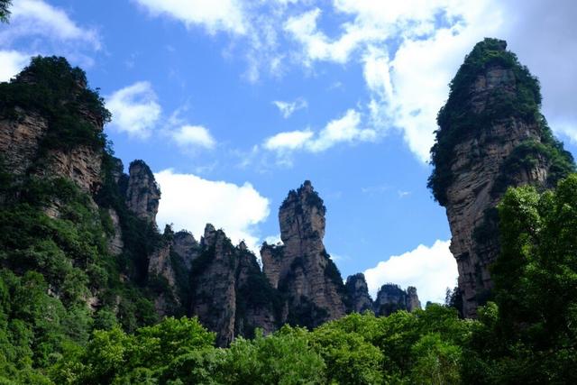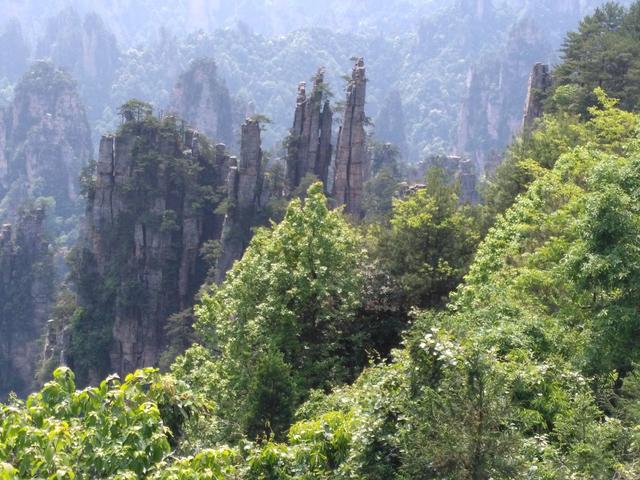 【乾坤柱】乾坤柱是科幻巨作《阿凡達》中哈利路亞山的原型,隨著電影的上映而聲名大噪。乾坤柱山體筆直,雄奇壯觀,山頂綠樹叢生,可惜趕上天氣晴好,沒有看到云霧繚繞的仙境般景色。