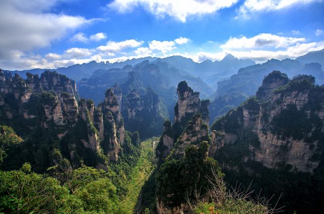 【迷魂臺】迷魂臺的位置正好處在整個武陵源景區的核心部位,是熱門景點,從百龍電梯上袁家界可直接抵達迷魂臺。這里主要是站在觀景臺上看峰林,高低粗落的翠峰千姿百態、景象萬千。如果遇到雨后是最幸運的了,云霧繚繞間更加彰顯“迷魂臺”本色。