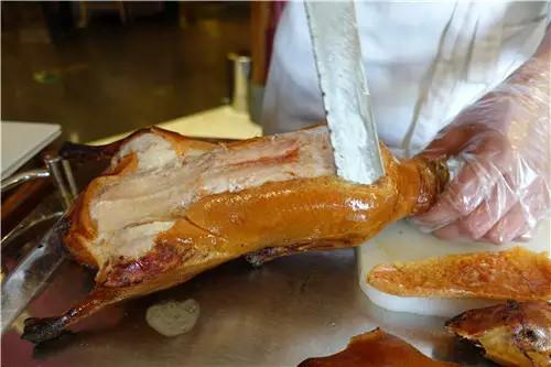 上面真空袋里的東西絕對不能稱之為北京烤鴨,吃北京烤鴨一定要到烤鴨店,吃剛出爐的,冒著熱氣端出來,廚師現場給您片,還得問您“片條,片片兒,還是皮肉分開”?