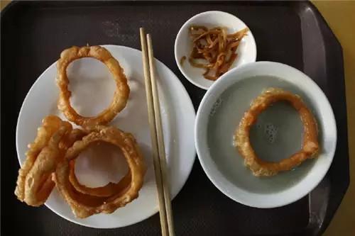 豆汁兒焦圈:這是一套組合,其中豆汁兒是酸臭的發酵類產品,一般人真接受不了,焦圈配咸菜一般人能接受。