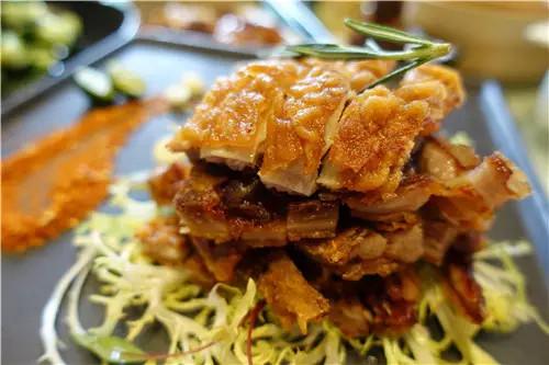 由于用的是填鴨,所以鴨子都巨肥,這樣烤出來表皮金黃,烤鴨皮是我最愛吃的,蘸上砂糖,放到嘴里嚼,焦香甘甜啊,滿嘴油。