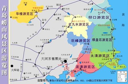 2、東線:由李滄區李村出發,先向北轉東,經惜福,王哥莊到仰口主要游覽仰口景區,如果早晨出發時間較早,游覽行程緊湊,剩余時間較多,可向南游覽棋盤石景區或直奔太清景區由南線返回。