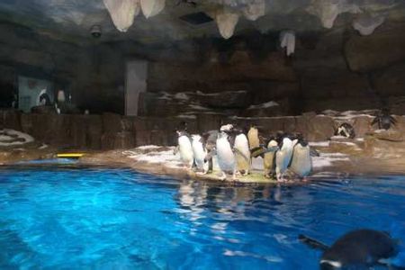 青島極地海洋世界位于青島市嶗山區東海東路60號,在著名的旅游度假區石老人沙灘之西(東起雕塑園,西至海洋娛樂城)。2006年7月22日隆重開業.總投資12億元,占地21萬平方米。是集大型模擬極地、海洋動物展演、購物、娛樂、休閑于一體的大型綜合旅游觀覽娛樂項目。館內擁有白鯨、企鵝、北極熊等十余種兩百余只極地動物,另還有千余種萬余只珍稀海洋生物在館內展示。青島極地海洋世界內擁有36個展館,可同時容納2800人參觀游覽,其中極地海洋動物館為核心部分,也是目前國內最大、擁有極地海洋動物品種最全、數量最多的場館。館內主要展示南、北極海洋動物,游客可以在模擬極地環境中觀賞到白鯨、海象、海獅、海豹、北極海獺、北極熊、企鵝等珍稀的極地動物,還可以欣賞這些大型海洋哺乳類動物的精彩表演。