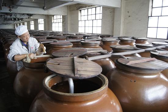 九江雙蒸酒傳統釀造技藝主要以大米為原料,用大米、黃豆制成酒曲,采用續添蒸飯、再度發酵、冷卻餾酒、齋酒貯存、陳肉醞浸、精心勾兌、過濾包裝的方法釀造白酒。