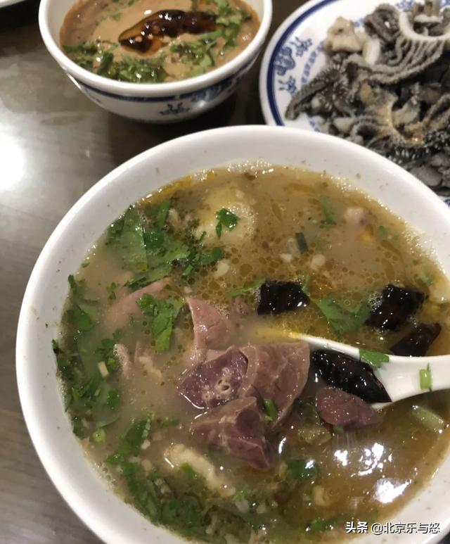 最后是這羊雜湯,一大碗量不少,現在要是還賣10塊,那就太值了!里邊各種雜碎都挺平均,就是腸感覺少了點,可惜!但重點是都燉了很爛糊,這比老四燒餅強!這您再配合一勺辣椒油,抱著喝去吧!是喝一碗想兩碗!
