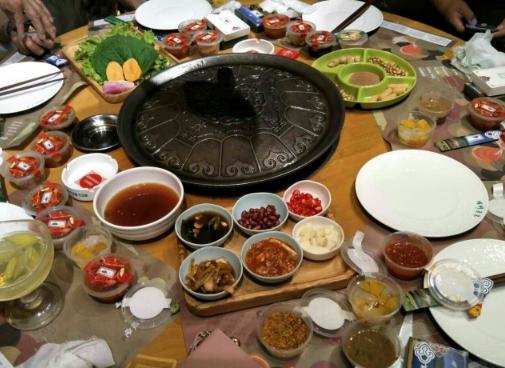 網友評論:這里對我來說本是遠在天邊,但架不住熟客的極力推薦。雖然熟客一直說的是“草原烽火”哈哈料啊紙巾啊裝在一個盒子里,每人一份,看著挺利索??救舛际欠諉T為你烤,省心省力。原味奶茶一大扎,好喝。酸菜我最愛??颈P上有個洞用以漏油,我還差點不知情地把油碟挪開……五個大人最終賬單300元出頭,點評代金券每百79,真是太棒了。