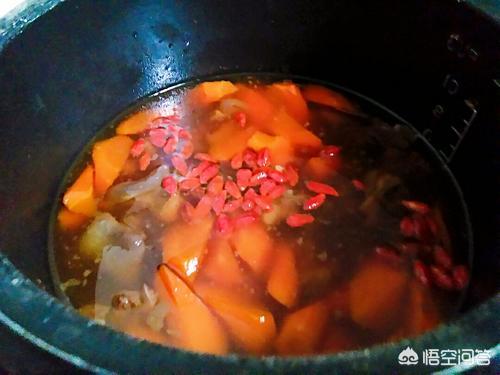 羊肉是溫熱性食品,有抵御風寒之功效,能改善身體虛弱、陽氣不足、畏寒無力的表現。枸杞是冬季補腎佳品,含有人體必需的各種營養成分,跟羊肉、胡蘿卜搭配起到溫暖人體的作用,是適合冬季的有取暖作用的美食。