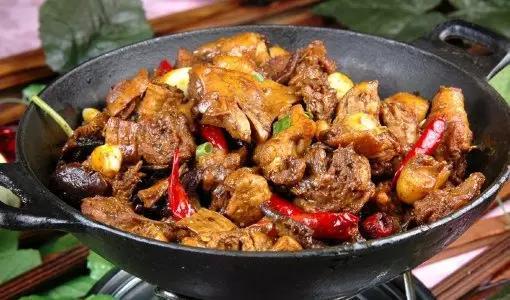 黃燜雞黃燜雞采用當地優質土仔雞,宰殺后洗凈,剁成小塊,先將花椒、姜片和辣椒入鍋翻炒至黑色,再把雞塊和少量醬油、蔥蒜等一并放入,雞肉水分干透后基本能出鍋啦?,F在全國各地都有了。
