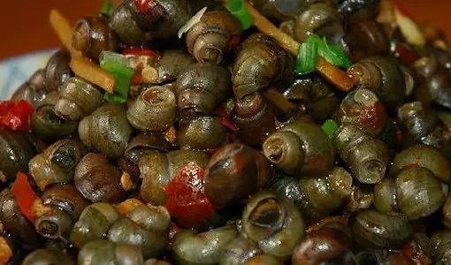 腌螺螄春季一般是食用螺螄的最佳季節。肉質咸中帶鮮,必備的下酒菜之一。