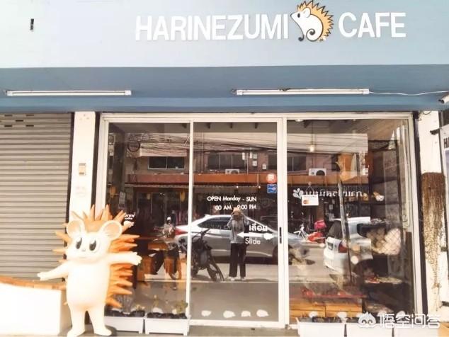 近幾年清邁有好幾家以小貓、小狗、魚、蟲、蛇等寵物為特色的咖啡店,著實讓喜愛寵物的人心動不已,紛紛尋店打卡乖乖主動掏錢。今天和大家分享的Harinezumi Cafe ,就是以刺猬豚鼠為萌主的咖啡小屋,實地探訪后,不得不感嘆這些小可愛太Cute 啦!這家刺猬咖啡店靠近古城,從古城東南角沿Sridonchai路步行過來不到5分鐘,就在主道旁邊,位置優越。點單后,選一處喜歡的桌子(選中央帶玻璃箱的)落座后,服務人員會送來一碟刺猬糧食、工具和堅實的皮質手套(為了保護刺猬的外皮,也保護我們的手,避免扎傷)。戴上手套后就可以與小刺猬們愉快地玩耍了,可以親親地撫摸它們,也可以喂食,觀看它們進食,抑或來張刺猬與我的自拍。在店內坐了一上午,觀察到好幾個帶孩子的家庭過來,幾乎所有的孩子見到萌萌噠的刺猬時都興奮開心不已,有時候真的很羨慕小孩子的感情表達,從來都是毫不掩飾,直接又干脆。