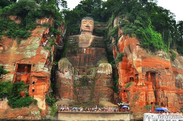 上榜理由:樂山大佛,地處岷江、青衣江和大渡河三江匯流處,與樂山城隔江相望。大佛依岷江東岸凌云山棲鸞峰臨江峭壁鑿造而成,是唐代摩巖造像的藝術精品之一,是我國現存最大的一尊摩崖石刻造像,是世界上最大的石刻彌勒佛坐像。被近代詩人譽為“山是一尊佛,佛是一座山”.樂山大佛通高71米,依山鑿成,臨江危坐,頭與山齊,足踏大江,雙手撫膝,體態勻稱,神勢肅穆。在大佛左右兩側沿江崖壁上,有兩尊身高超過16米的護法天王石刻,與大佛一起形成了一佛二天王的格局。與天王石刻共存的還有數百龕上千尊石刻造像,宛然匯集成龐大的佛教石刻藝術群。